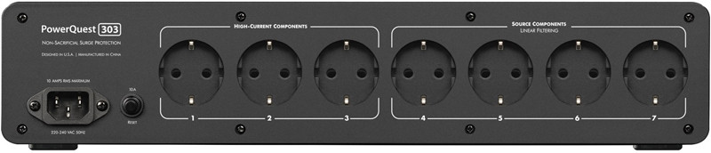 L'un des atouts majeurs du PowerQuest 303 est sa capacité à fournir une protection contre les surtensions et une réduction linéaire du bruit. Il est équipé de 7 prises, dont 3 à courant élevé destinées aux dispositifs d'amplification et 4 autres prises filtrées linéairement pour les sources. Cette configuration permet une distribution optimale du courant en fonction des besoins spécifiques des différents appareils connectés.