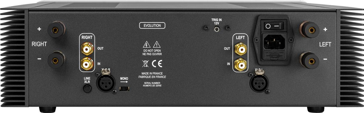 - Connectique complète avec entrée RCA, entrée XLR, sortie ligne RCA, borniers en cuivre au tellure et entrée Trigger 12V.