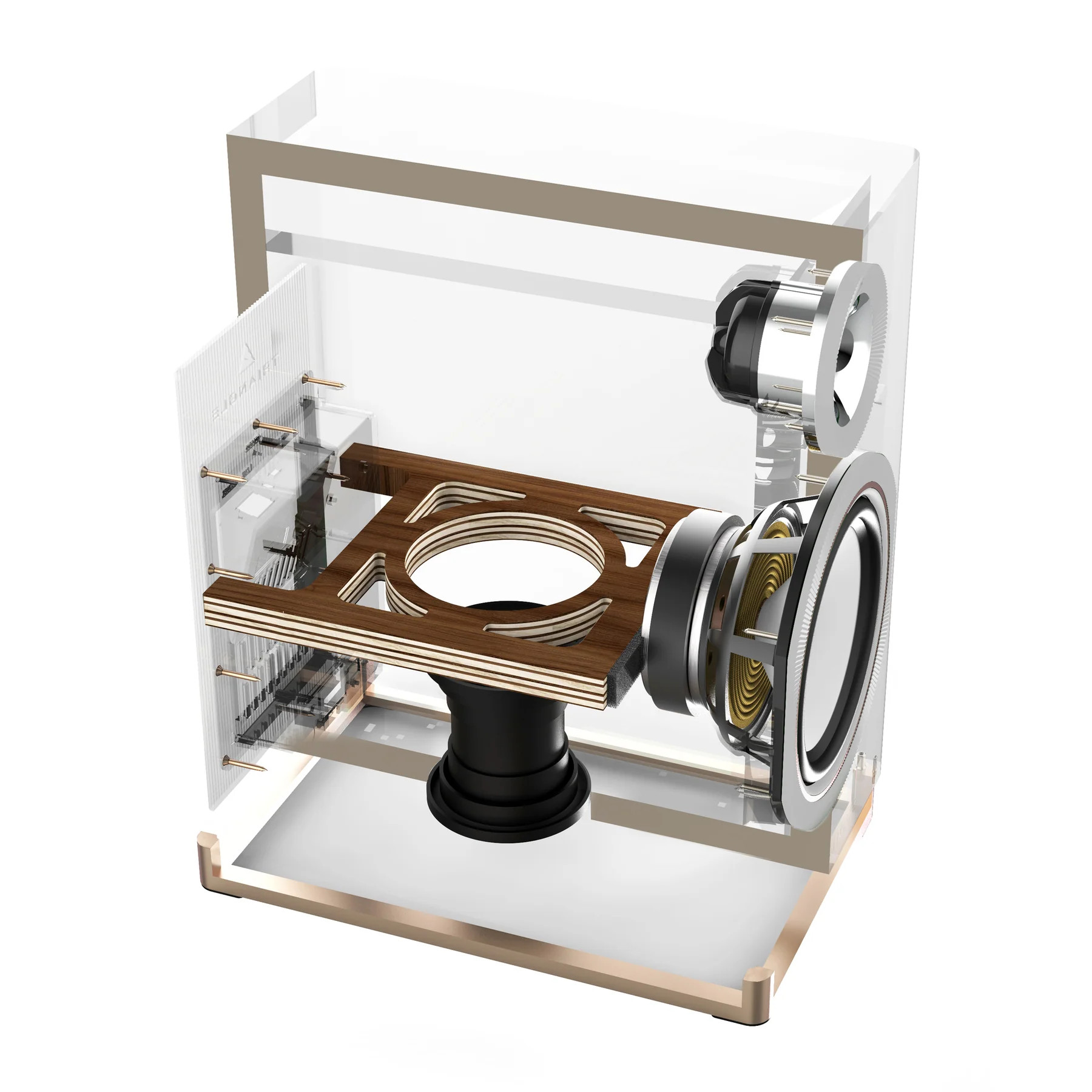 Le médium-grave est un haut-parleur de 16,5 cm à membrane en pulpe de cellulose 100% naturelle, issu des recherches menées pour la gamme Esprit 40ème Anniversaire. Cette membrane papier donne aux voix et aux instruments acoustiques une texture naturelle. L'évent bass-reflex est orienté vers le sol, ce qui permet une diffusion homogène des basses fréquences sans perturbation du registre vocal.
