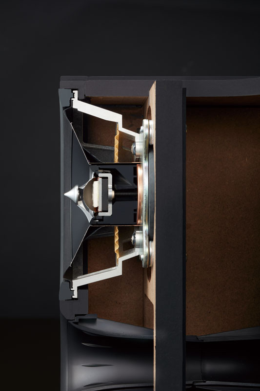 - Tweeter dôme soie EFS (Efficient Flow System) de 25 mm avec pièce de mise en phase et moteur néodyme, pour une dispersion homogène des aigus dans toute la pièce.