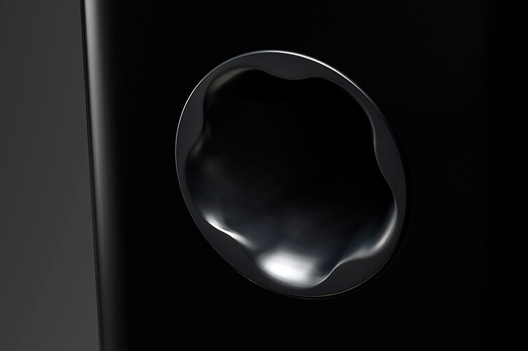 - Charge bass-reflex avec deux évents en façade permettant un positionnement flexible, y compris proche d'un mur, sans dégrader la tenue dans le grave.