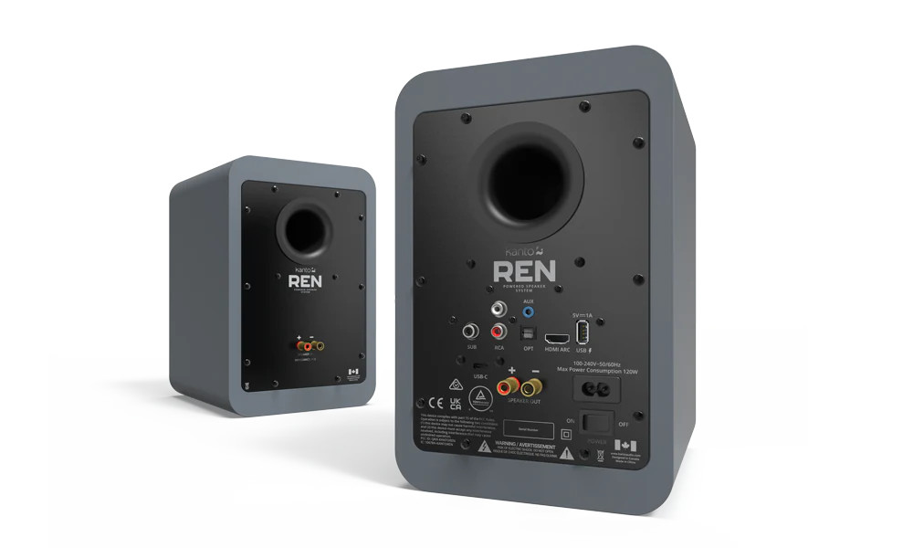 Les Kanto REN sont une paire d'enceintes actives conçues par la marque canadienne Kanto, pensées comme une alternative sérieuse aux barres de son tout en conservant les atouts d'un vrai système stéréo. Leur particularité : une entrée HDMI ARC avec CEC, encore rare sur ce format d'enceintes de bibliothèque, qui permet de les relier directement à un téléviseur et de contrôler le volume depuis la télécommande de ce dernier. Disponibles en cinq coloris mats (noir, blanc, gris, bleu et orange), elles visent aussi bien le salon que le bureau ou la chambre.