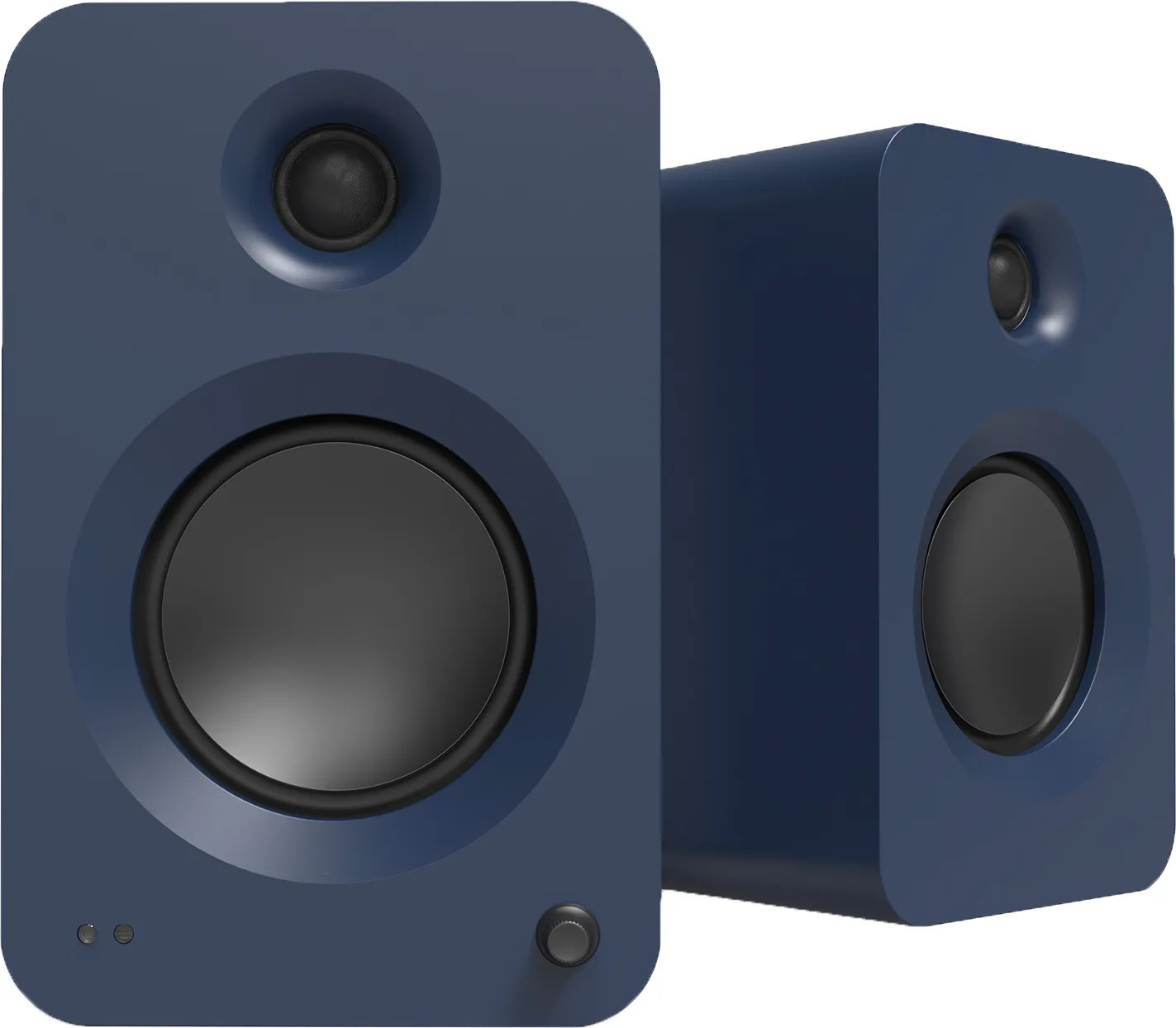 Chaque enceinte embarque un tweeter à dôme en soie de 25 mm et un haut-parleur médium/grave de 130 mm à cône aluminium concave. Ce woofer en aluminium, hérité du haut de gamme Kanto, combine rigidité et légèreté : deux qualités qui limitent la distorsion et permettent de restituer un bas médium propre, avec des voix bien présentes. Le dôme en soie, lui, apporte un aigu doux et naturel, moins agressif qu'un tweeter métallique ou AMT, ce qui convient aux longues sessions devant la TV où les sources peuvent parfois être un peu dures.