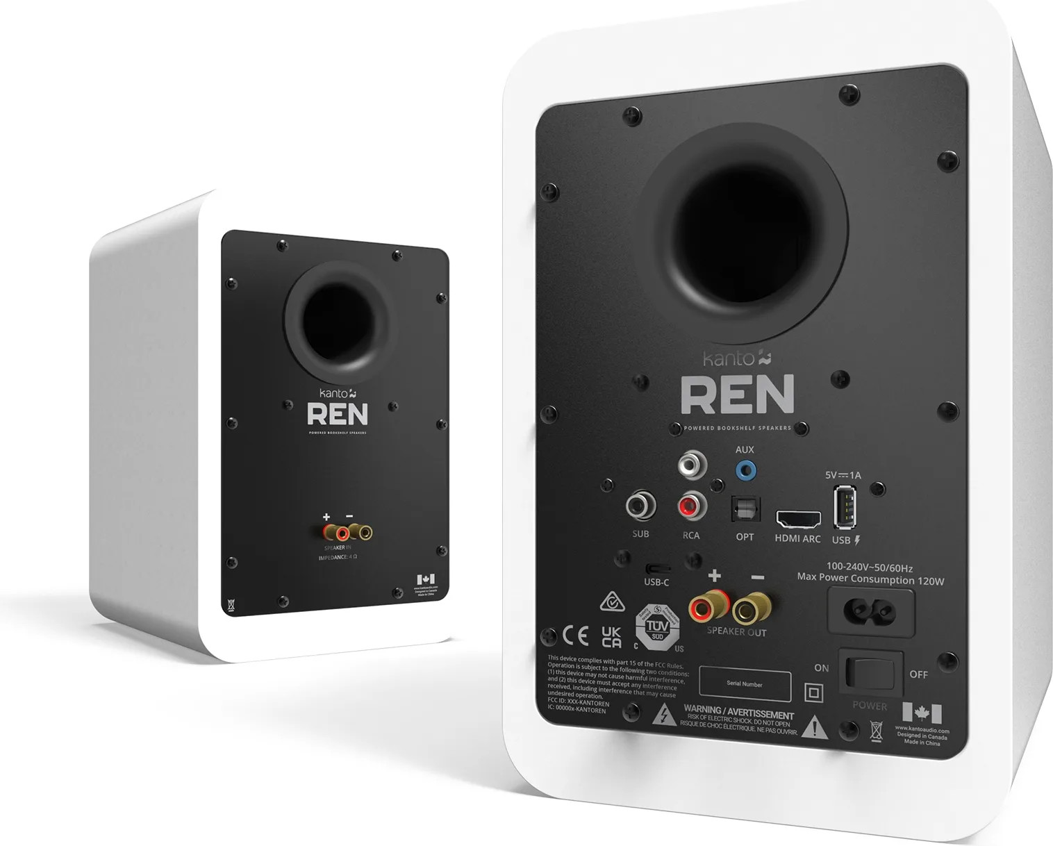Les Kanto REN sont une paire d'enceintes actives conçues par la marque canadienne Kanto, pensées comme une alternative sérieuse aux barres de son tout en conservant les atouts d'un vrai système stéréo. Leur particularité : une entrée HDMI ARC avec CEC, encore rare sur ce format d'enceintes de bibliothèque, qui permet de les relier directement à un téléviseur et de contrôler le volume depuis la télécommande de ce dernier. Disponibles en cinq coloris mats (noir, blanc, gris, bleu et orange), elles visent aussi bien le salon que le bureau ou la chambre.