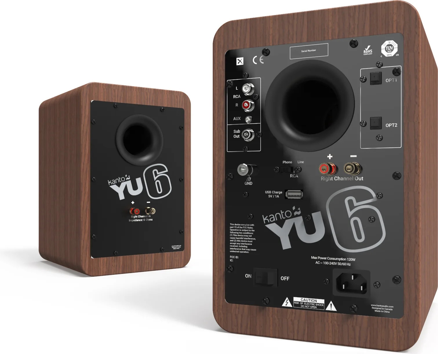 Côté transducteurs, les YU6 sont équipées de tweeters à dôme soie de 1 pouce et de haut-parleurs de grave-médium en Kevlar de 5,25 pouces. La soie offre des aigus doux qui ne fatiguent pas l'oreille sur de longues écoutes, tandis que le Kevlar, rigide et léger, permet à la membrane du grave-médium de se déplacer avec précision sans se déformer, ce qui réduit la distorsion à fort volume.