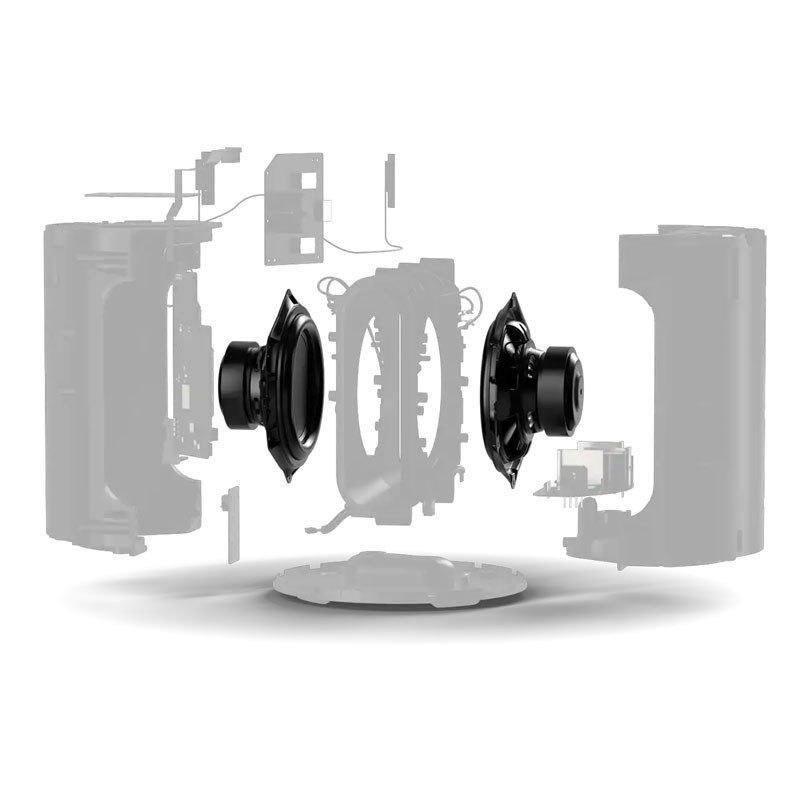Les deux woofers sont orientés vers l'intérieur pour créer un effet d'annulation des forces qui évite toute altération des basses.