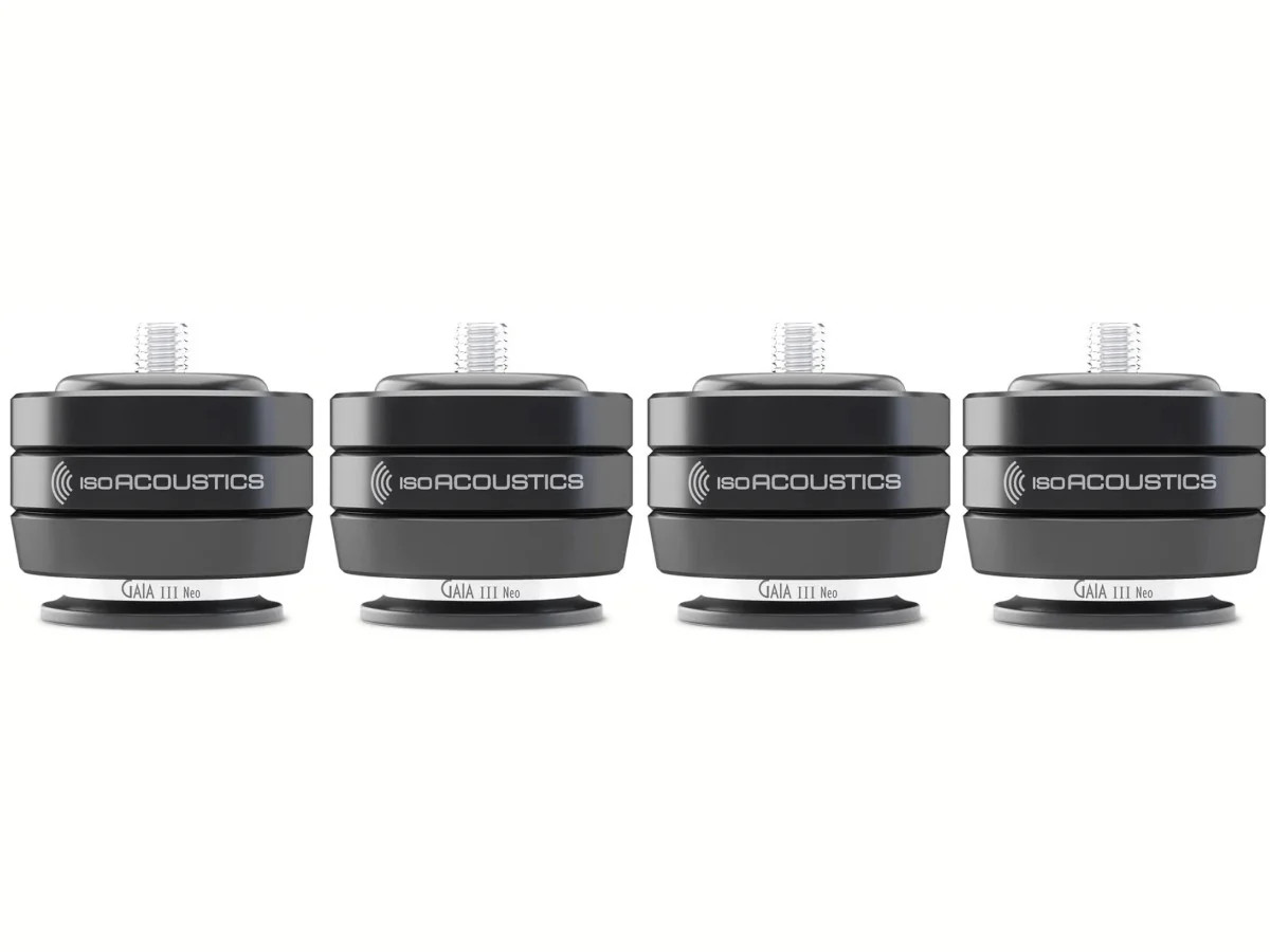Les IsoAcoustics GAIA III Neo sont des pieds d'isolation acoustique pour enceintes colonne et subwoofers jusqu'à 32 kg. Ils remplacent les pointes d'origine pour un son plus clair, plus précis et mieux défini.