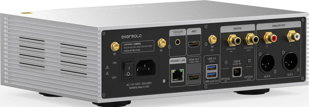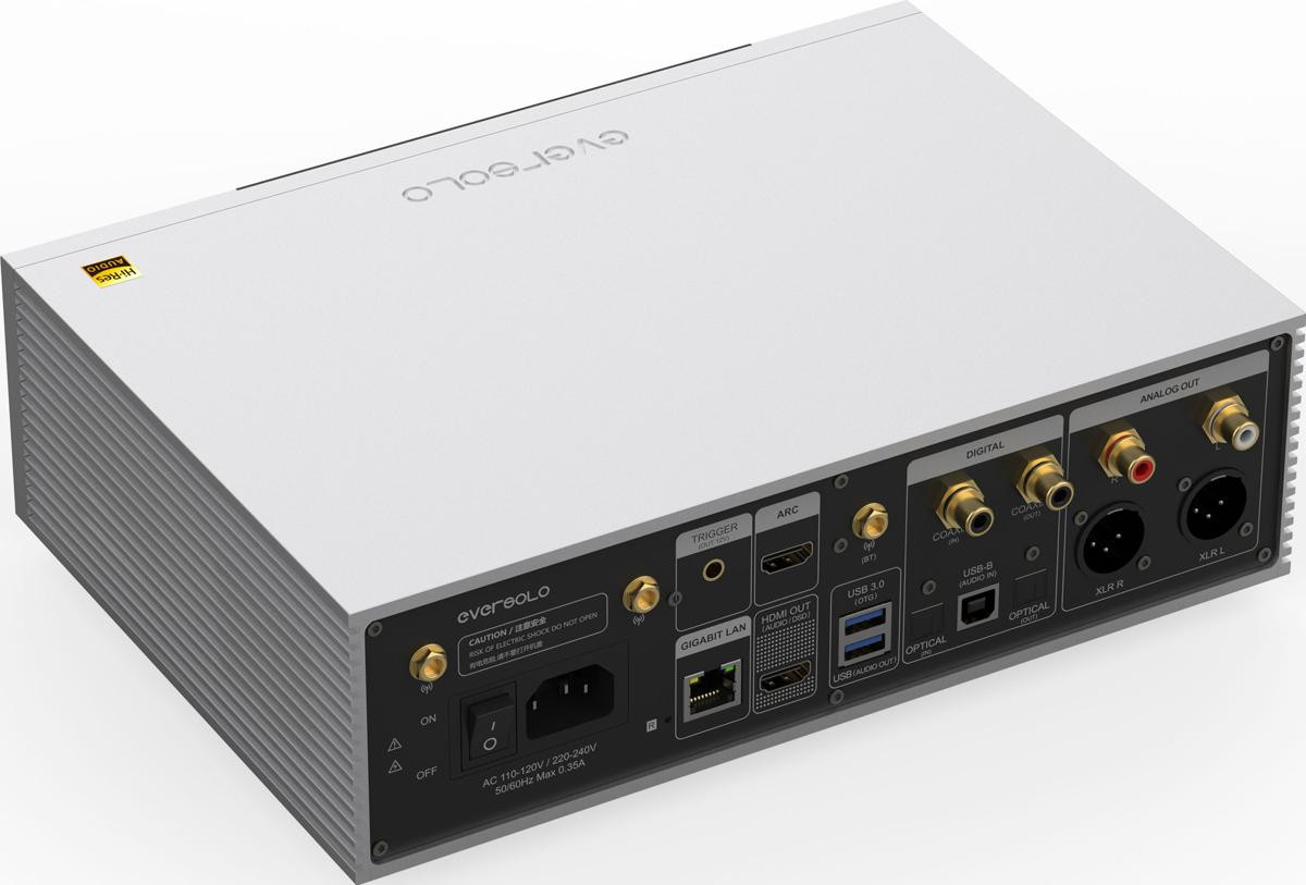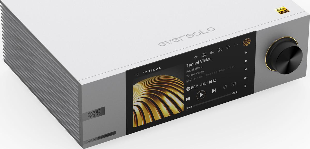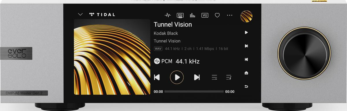 - Écran tactile LCD 6 pouces, application Eversolo Control multiplateforme, double emplacement SSD M.2 NVMe (jusqu'à 16 To) et lecture Hi-Res jusqu'à PCM 32 bits / 768 kHz et DSD512.