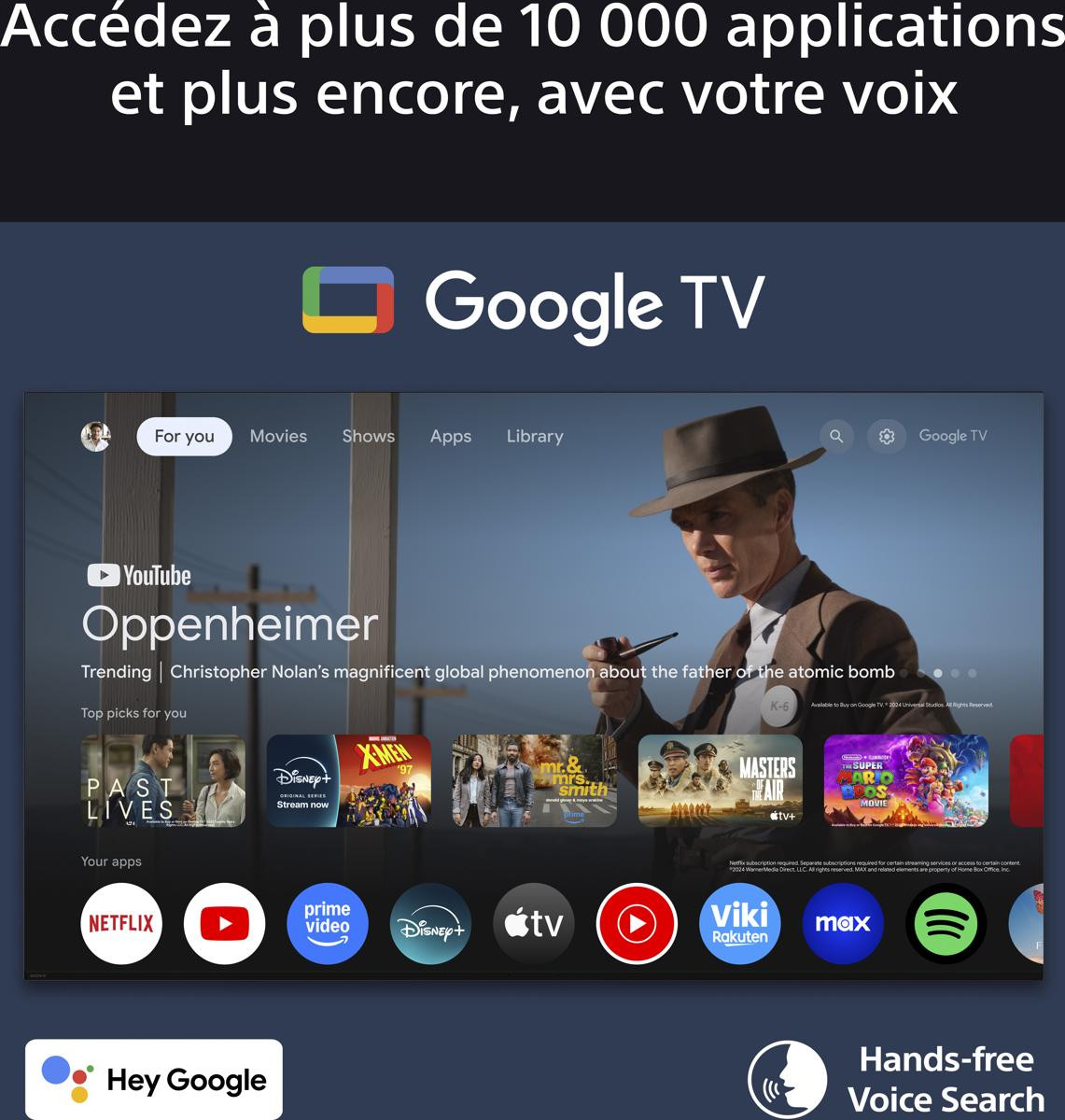 - Système d'exploitation Google TV, commandes vocales avec Google Assistant, compatibilité Chromecast et Apple AirPlay 2 pour partager facilement vos contenus.