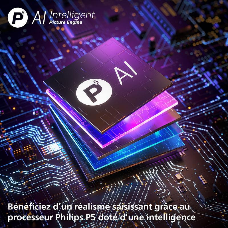 - Processeur P5 AI Perfect Picture Engine Gen 8 : analyse d’image par IA, upscaling 4K, optimisation du micro-contraste et gestion dynamique du HDR.