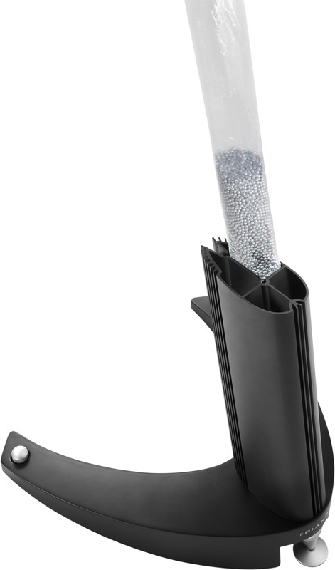 - Un tube compartimenté lestable, permettant d’ajouter des billes métalliques ou du sable (vendus séparément) afin d’améliorer l’inertie et la stabilité du support.