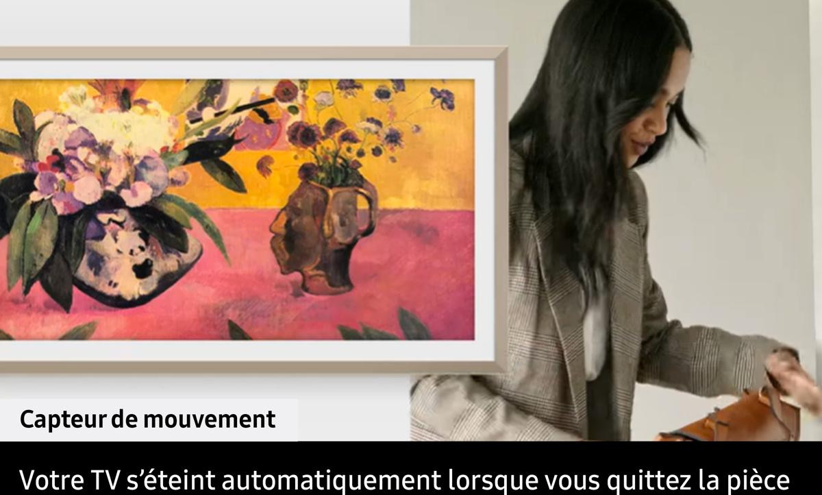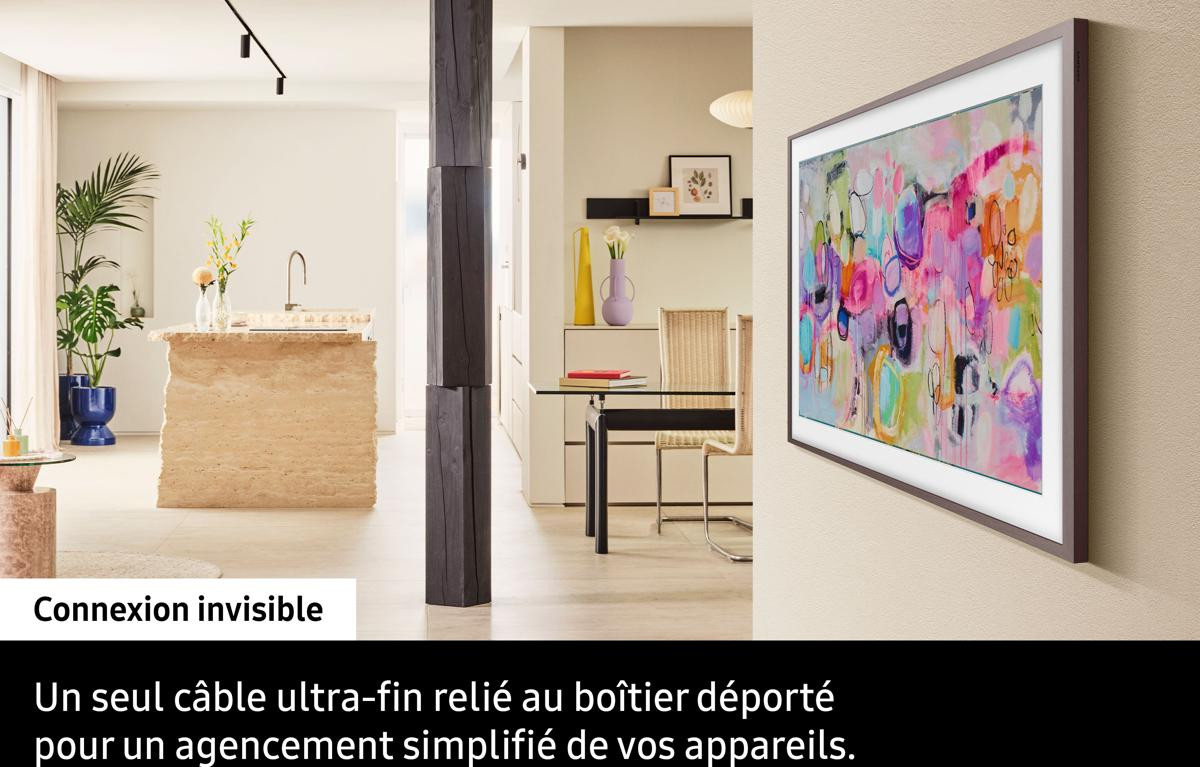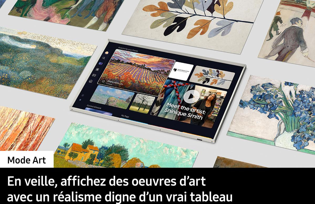 - Transformez votre TV en tableau avec le Mode Art : affichez vos photos ou plus de 3000 œuvres grâce à l’Art Store. Changez le cadre pour l’adapter à votre déco (cadres vendus séparément).